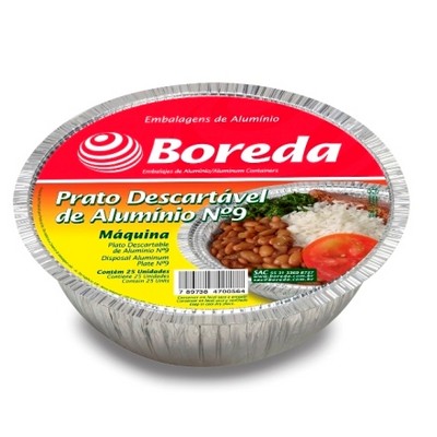 A Marmitex Aluminio Boreda nº 9 é um marmitex descartável de alumínio muito utilizado em restaurante, churrascarias, cozinhas industriais entre outros estabelecimentos que fornecem alimentos, pois mantém a temperatura do alimento por muito mais tempo.